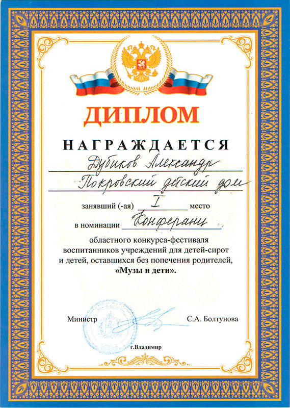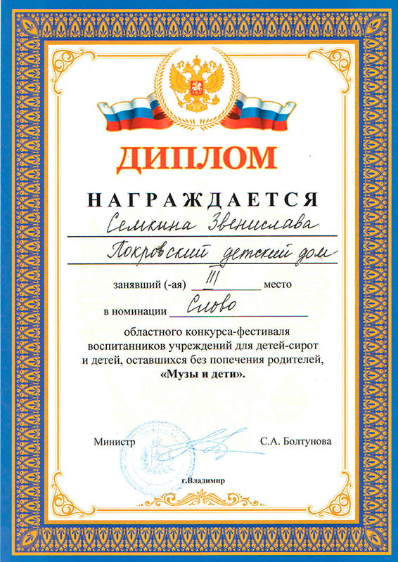 12 мая 2023 года во Владимирском дворце детского и юношеского творчества прошел ежегодный областной конкурс-фестиваль воспитанников учреждений для детей-сирот и детей, оставшихся без попечения родителей, «Музы и дети».