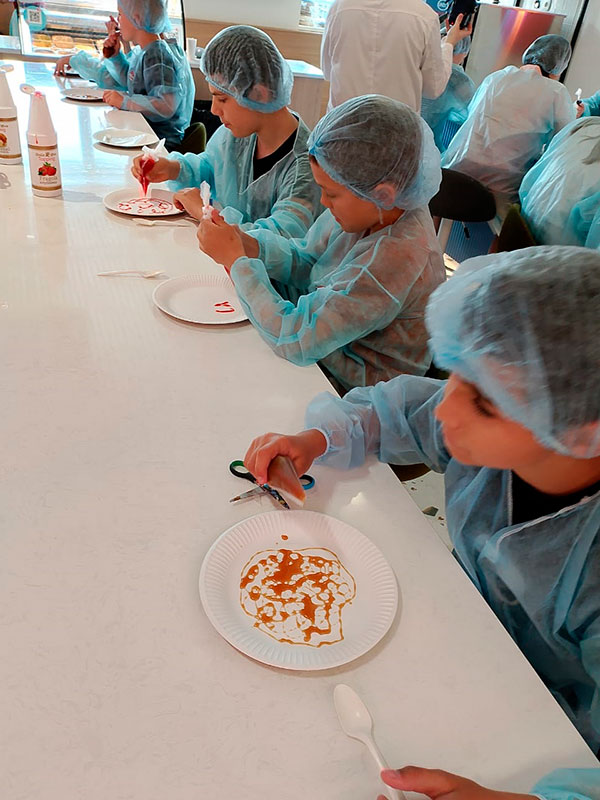 На экскурсии ребятам показали все части производства – от складов до конвейеров. Параллельно, рассказали, как ингредиенты поступают на фабрику, каким образом их смешивают. Затем, ребят пригласят на мастер-класс и предложили украсить шарики мороженого при помощи сладких топпингов. Вкусный результат своих трудов можно было съесть.